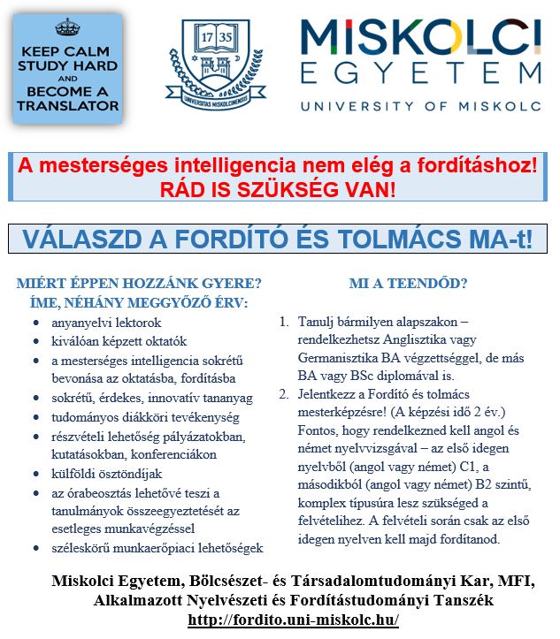 További információ: Dr. habil. Dobos Csilla (szakfelelős): dobos.csilla@uni-miskolc.hu Mobil: +3620 493 4184