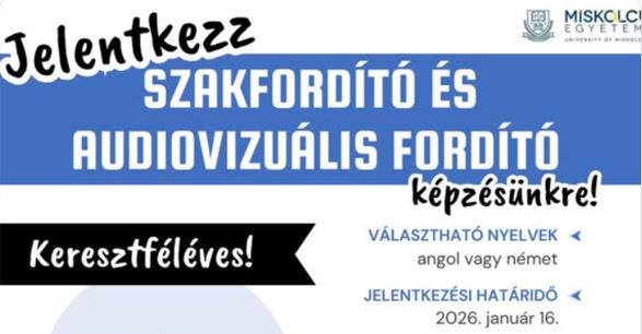 Jelentkezz az Alkalmazott Nyelvészeti és Fordítástudományi Tanszék keresztféléves képzésére, a Szakfordító és Audiovizuális fordító szakirányú továbbképzésre!